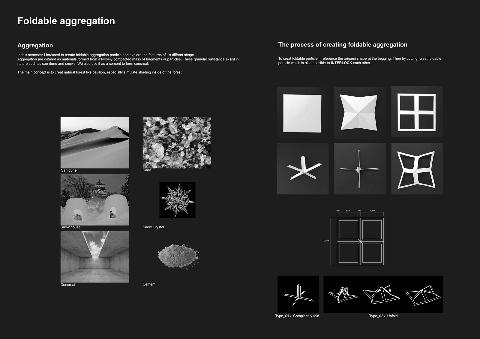 The main concept is to design architecture which create natural like shading inside by adapting idea of aggregation and foldable.